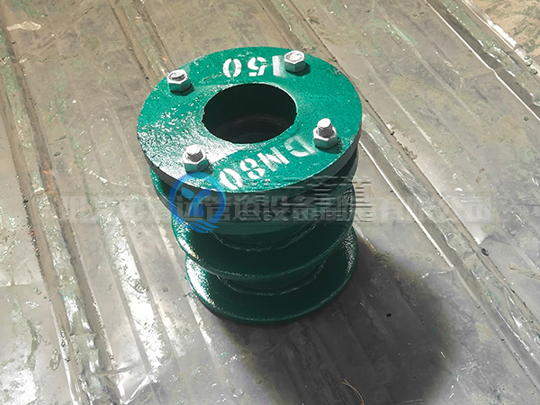 人防密閉套管用于穿越人防區的位置。人防密閉套管采用剛性連接。人防密閉套管和剛性防水套管結構類似,僅僅比剛性防水套管外多一翼環,還有一防沖擊波的擋板,擋板與翼環、管道直接焊接。